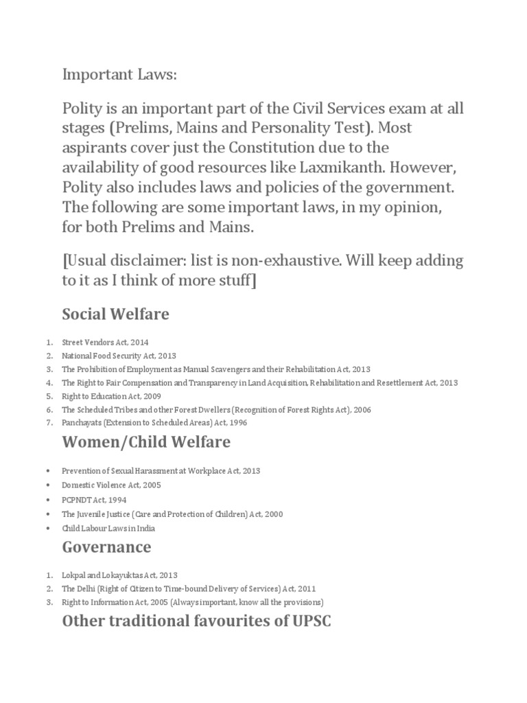 Important Laws In India Important Laws In India - Constitution of india contains 395 articles in 22 parts.