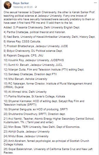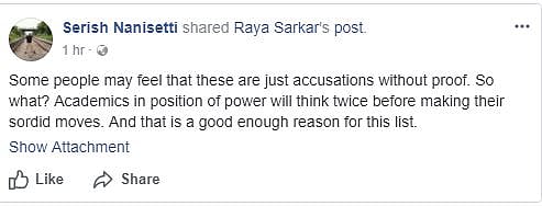 Facebook List Naming Profs As Sexual Harassers Sparks Fiery Debate - On monday, a woman law student, raya sarkar, put up a facebook post naming two academics who had sexually harassed their students.