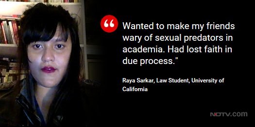Abhijit Iyer Mitra On Twitter 5 N What Drives This Fake Lefty Feminism Publicity I Bet You Sreenivasanjain Ravishndtv Sardesairajdeep Will Run Her Story Soon Https T Co 2gl1qrbrsl - On monday, a woman law student, raya sarkar, put up a facebook post naming two academics who had sexually harassed their students.